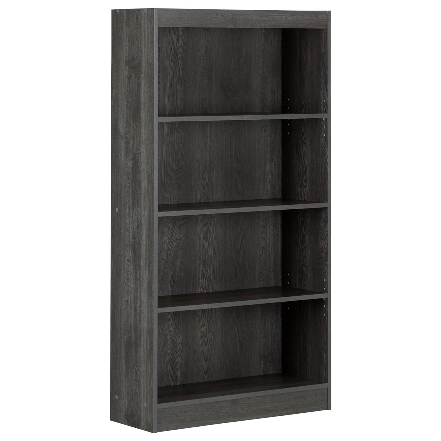 4-Shelf Simple Modern Bookcase Storage Shelf in Grey/Black Wood Finish